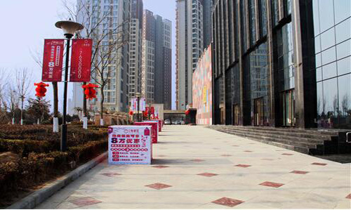 中集•青春里營(yíng)銷中心外,道旗和廣告箱上紅白相間的活動(dòng)宣傳畫面,營(yíng)銷中心門頭火紅的大燈籠……無不彰顯著青春里在新的一年里的積極、熱情、向上、進(jìn)取的精神。