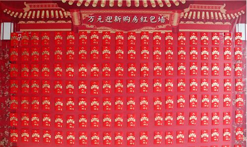 墻頂上吊下來金光燦燦的金蛋,充滿著喜慶;凡認(rèn)籌客戶即可現(xiàn)場(chǎng)砸金蛋,領(lǐng)取家電大禮;同時(shí)可以抽取最高18888元的購房紅包(代金券)。