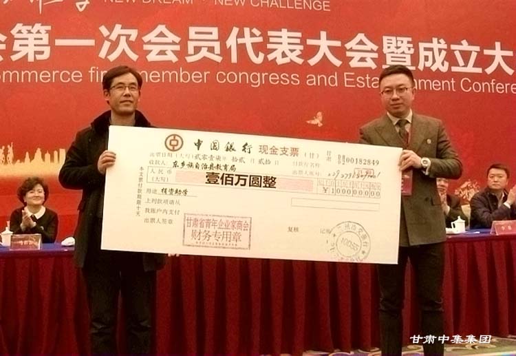 同時,甘肅省青年企業(yè)家商會副會長、甘肅中集實業(yè)集團董事長周啟濤代表甘肅省青年企業(yè)家商會現(xiàn)場向東鄉(xiāng)族自治縣捐贈100萬元,用于建造東鄉(xiāng)縣石家溝村幼兒園。