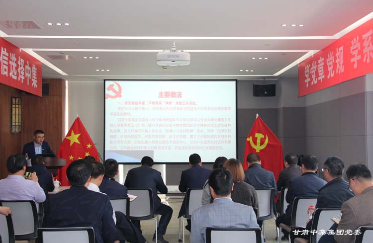 觀摩團(tuán)一行首先聽取了甘肅中集集團(tuán)公司的基本情況及集團(tuán)公司黨委黨建的基本情況,隨后實地參觀了集團(tuán)公司黨委黨員活動室、黨員會議室,問詢了企業(yè)黨建工作現(xiàn)狀和“三會一課”開展情況,并通過聽取匯報工作、翻閱資料等方式了解了集團(tuán)黨委及各支部黨建工作。