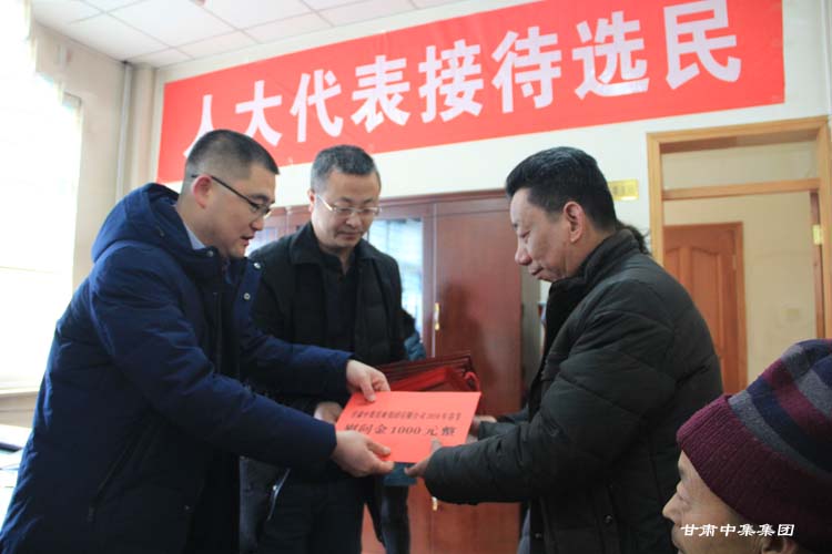 2018年2月7日上午,在2018年新春佳節(jié)即將來(lái)臨之際,甘肅省慈善總會(huì)榮譽(yù)會(huì)長(zhǎng)、安寧區(qū)人大代表、甘肅中集集團(tuán)董事長(zhǎng)周啟濤親自安排部署,并委托集團(tuán)公司黨委委員魏建峰、安 康兩位同志親自前往安寧區(qū)十里店街道辦事處,在街道黨工委副書記、人大工委主任梅鵬飛等領(lǐng)導(dǎo)陪同下,開展愛心送溫暖行動(dòng),為街道10戶特困家庭送上新年的祝福和慰問金。