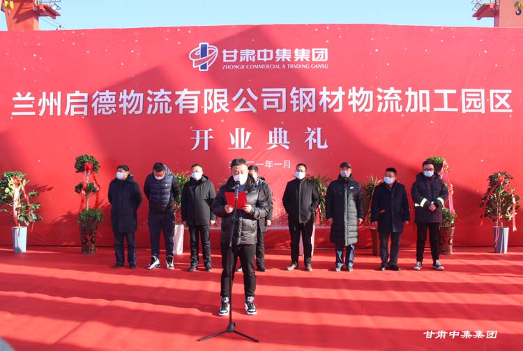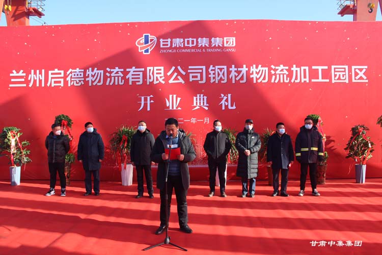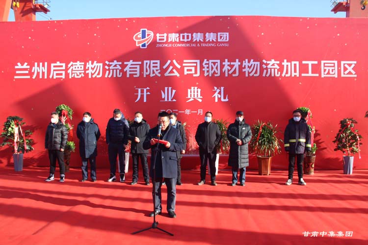 2021年1月12日上午10:18分,甘肅中集實業(yè)集團有限公司旗下蘭州啟德物流有限公司河口鋼材物流加工園區(qū)開業(yè)慶典在甘肅物產(chǎn)集團河口物流園隆重舉行。甘肅中集實業(yè)集團有限公司黨委書記、董事長周啟濤隆重宣布物流園開業(yè)。酒鋼集團、八一鋼鐵集團、內蒙古包鋼集團、甘肅省物產(chǎn)集團河口物流園、甘肅省鋼材商會、物流園轄區(qū)及公司合作伙伴等100余名領導嘉賓參加開業(yè)慶典。