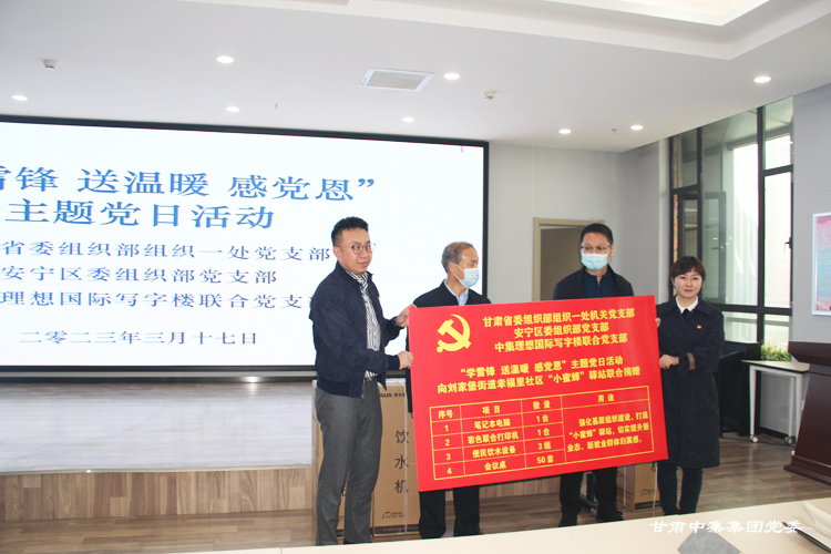 2023年3月17日,甘肅省委組織部組織一處黨支部、安寧區(qū)委組織部黨支部、甘肅中集集團黨委聯(lián)合開展“學雷鋒 送溫暖 感黨恩”主題黨日活動——向劉家堡街道幸福里社區(qū)“小蜜蜂”驛站聯(lián)合捐贈價值3萬余元的配套設(shè)施。